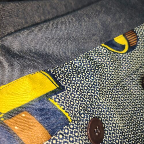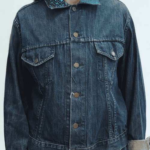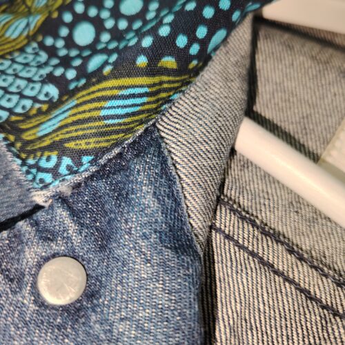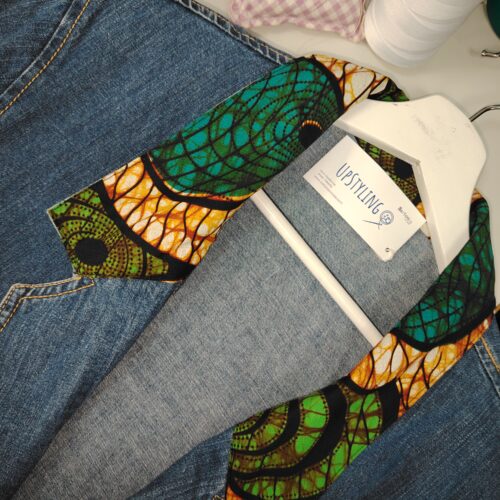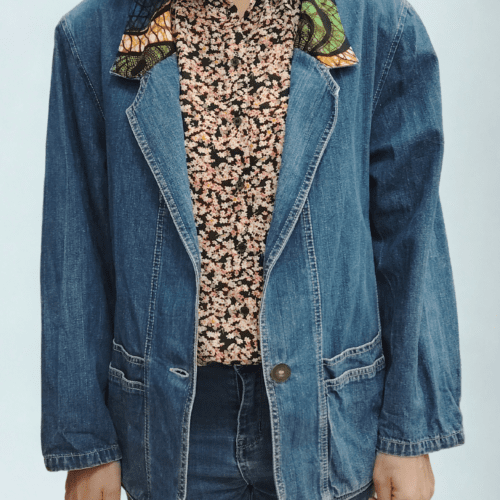 Giacca jeans con colletto in tessuto wax africano