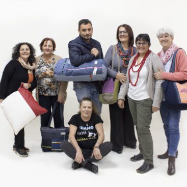 Il gruppo della Sartoria Sociale include anche le donne del Pagliarelli Lab, un laboratorio di cucito al femminile dentro il carcere Pagliarelli di Palermo.