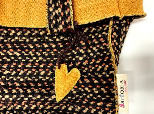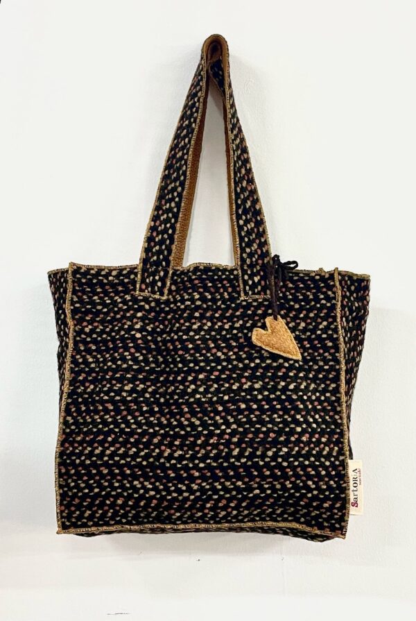 Capiente, foderata con tasca interna, la Big Bag Cuoricini ti accompagna nella vita quotidiana. Disponibile in stoffe in lana.