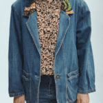 giacca jeans con rifinitura colletto e retro in tessuto wax africano